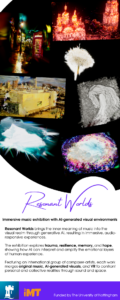 Step into Resonant Worlds, a ground-breaking immersive exhibition where music, art, and artificial intelligence intertwine to create powerful emotional journeys. Presented by the Interactive and Intelligent Music Technology (I2MT) Group at the University of Nottingham, this unique event invites you to explore AI-generated soundscapes and interactive installations that respond to human emotion and imagination.